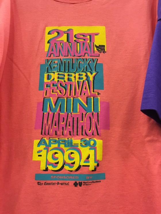 My first 21 kilometer race ever was this one, as a sophomore at Seneca High in Louisville. Still have this shirt–but mine’s a bed for the field mice in my parent’s shed.