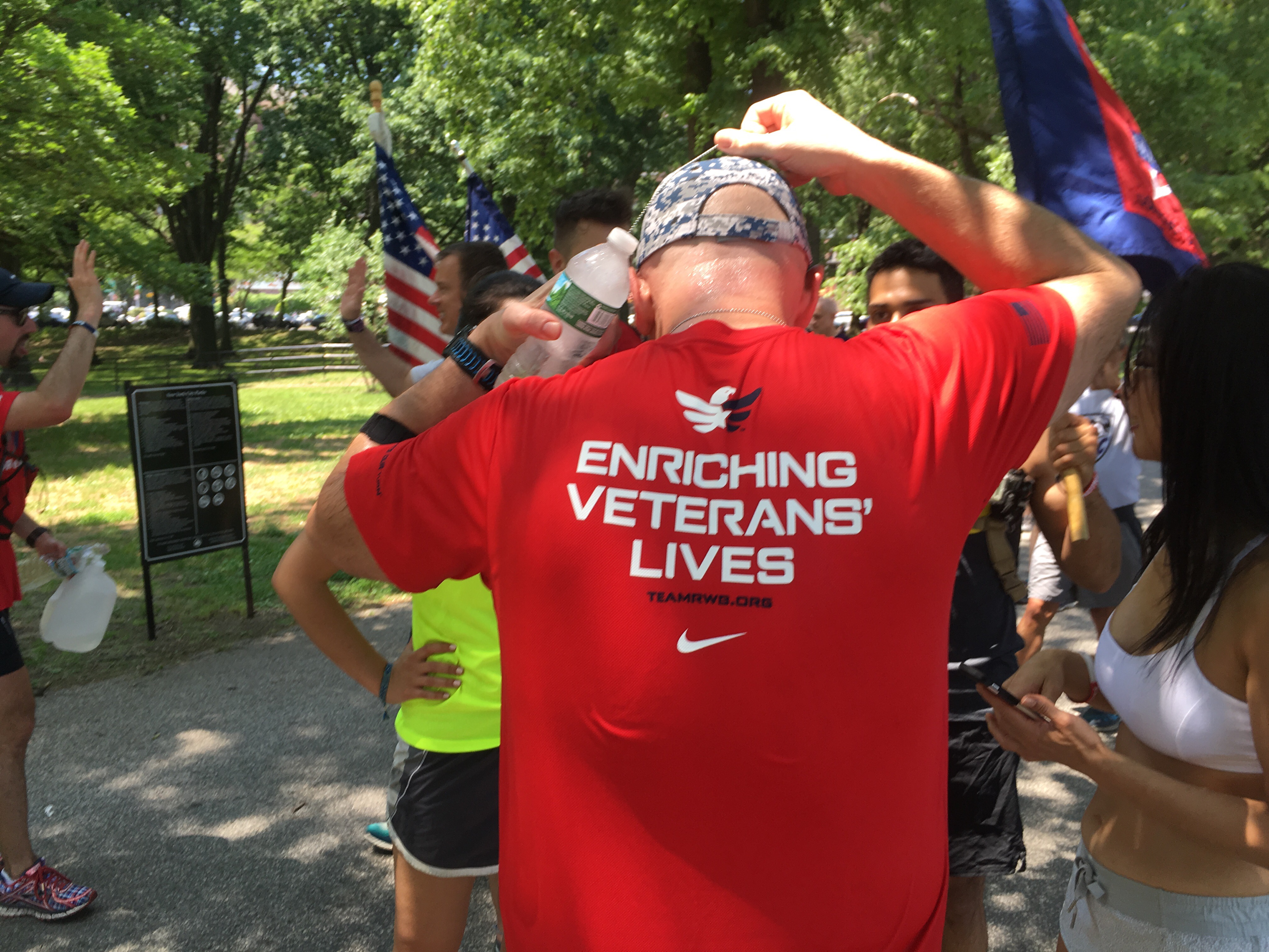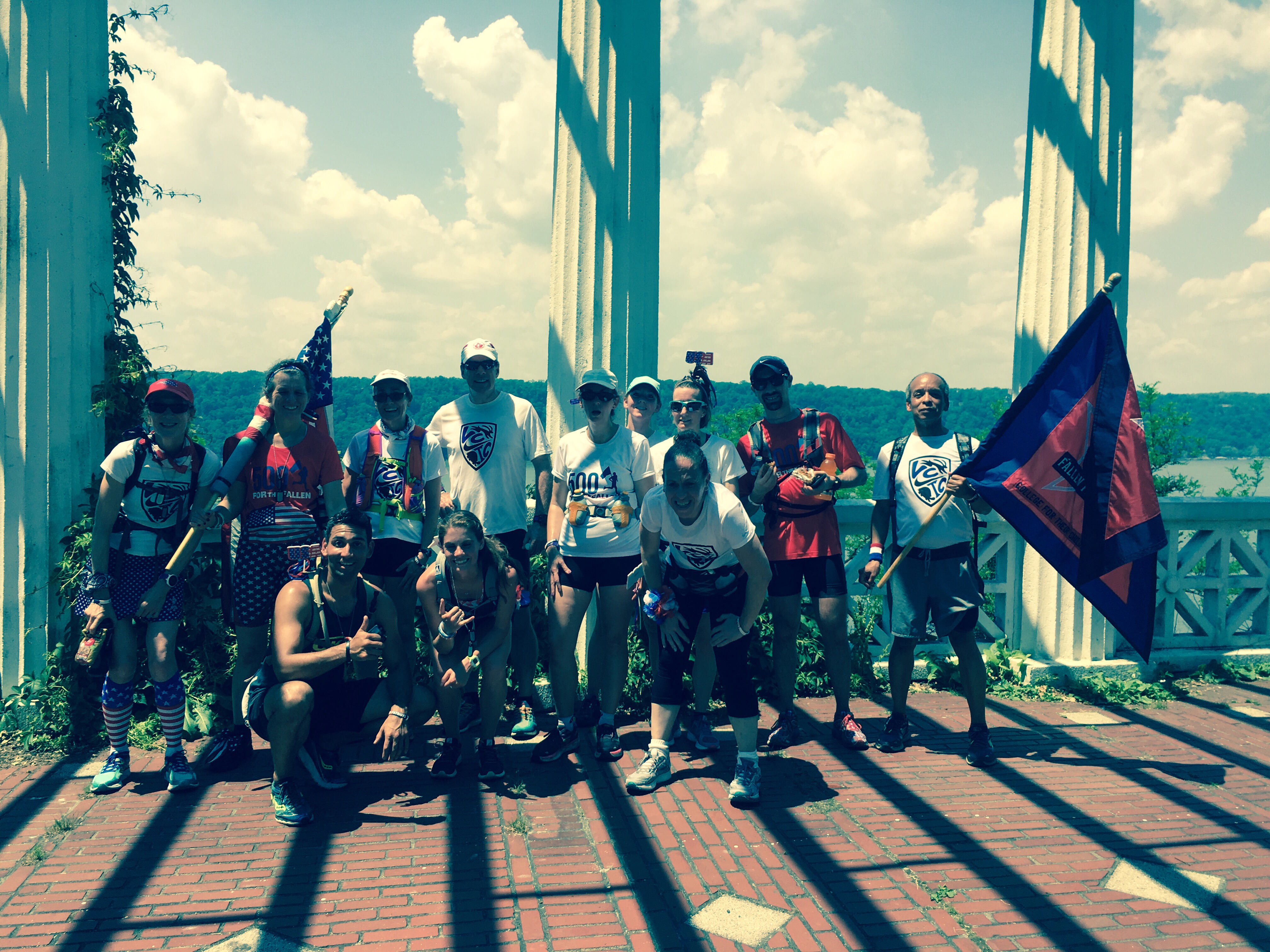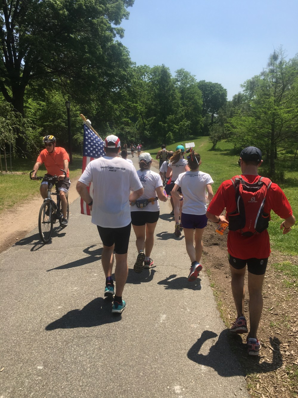 It is around 90 degrees and humid. We stop briefly for salt, fluids and a quick pic.