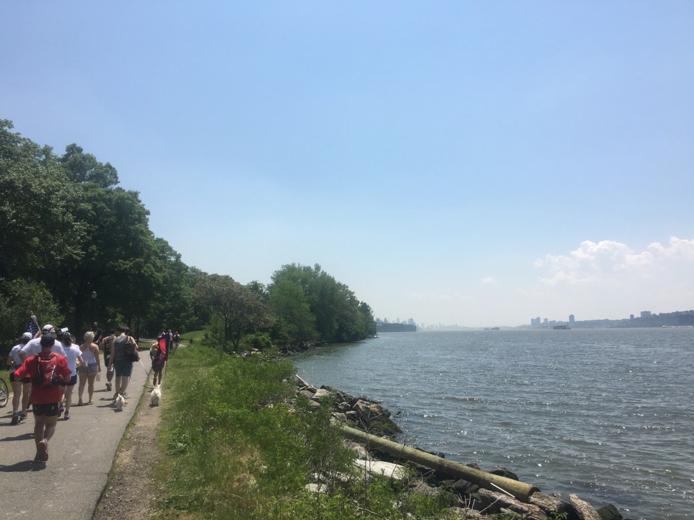 We made it! Another relay team is waiting and we pass off the flags, kind off. Some Of our team, including our Bronxite Asher, keep on going! (he would put in a total of 33 miles) And they’re off to New Jersey…