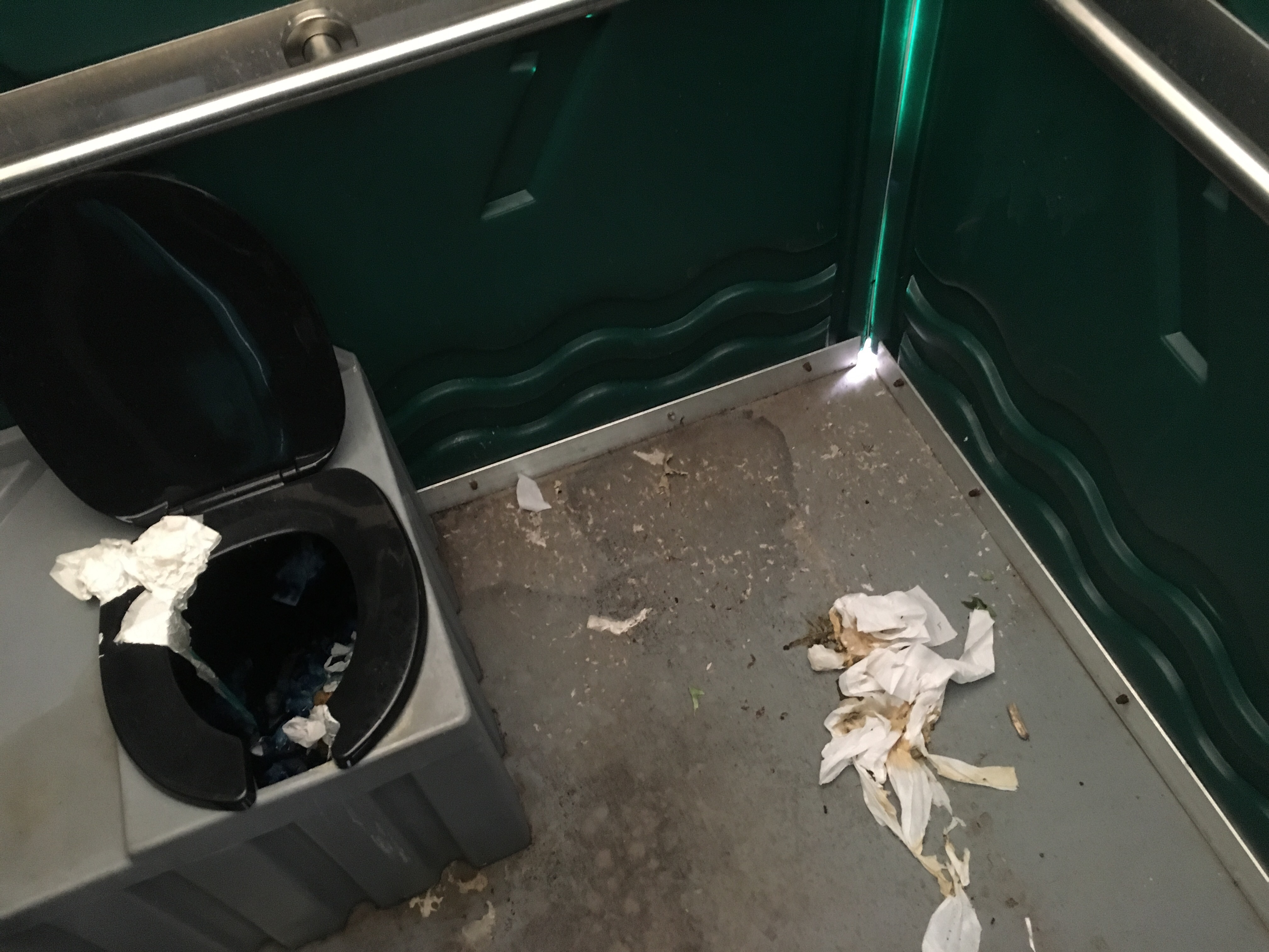 I registered for the race–raising money for a teen suicide prevention hotline–and soon began warming up. First, and most regrettably, I used this port o potty…