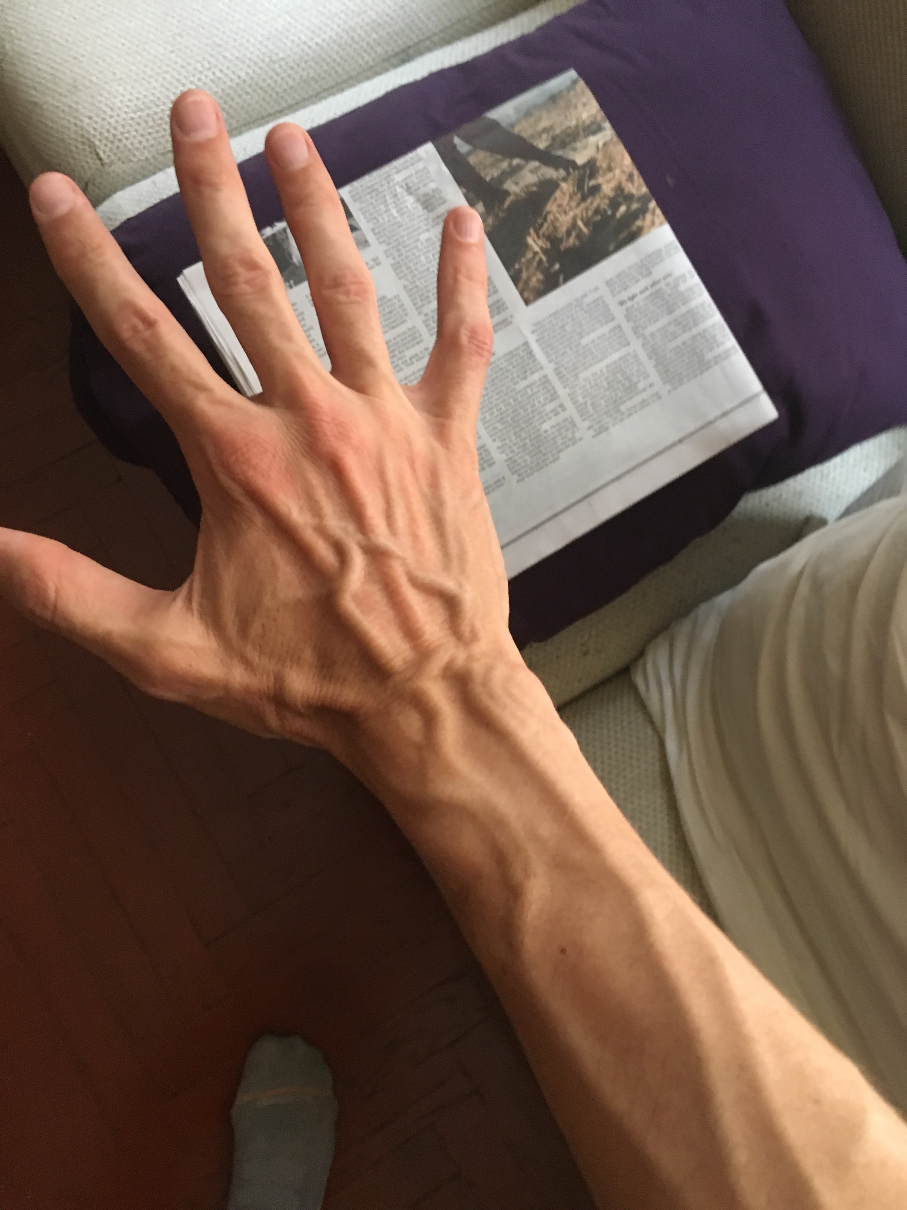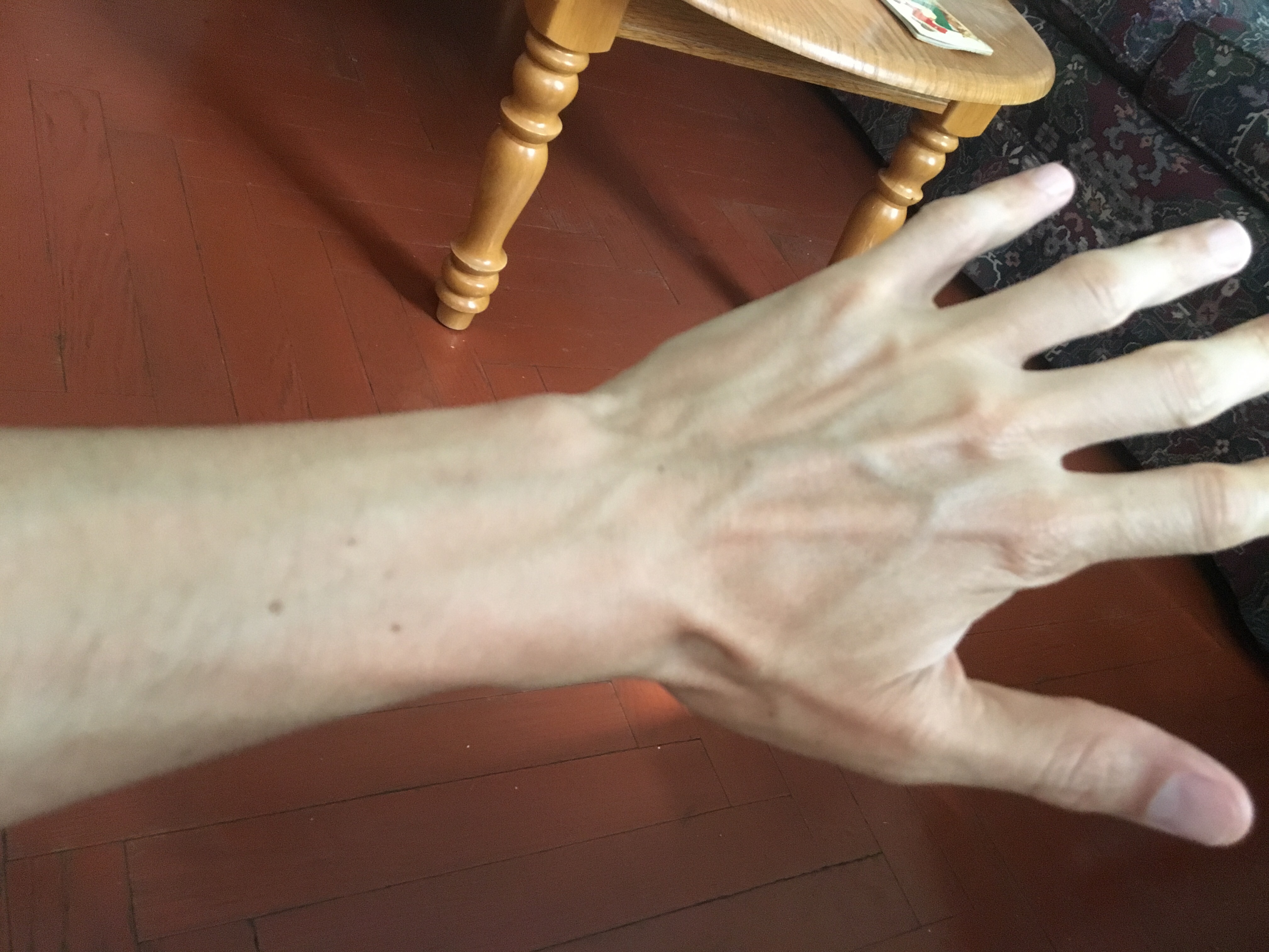 I have good blood circulation. Serves me well in distance running. Note how my wrist is out of proportion with my large hand.
