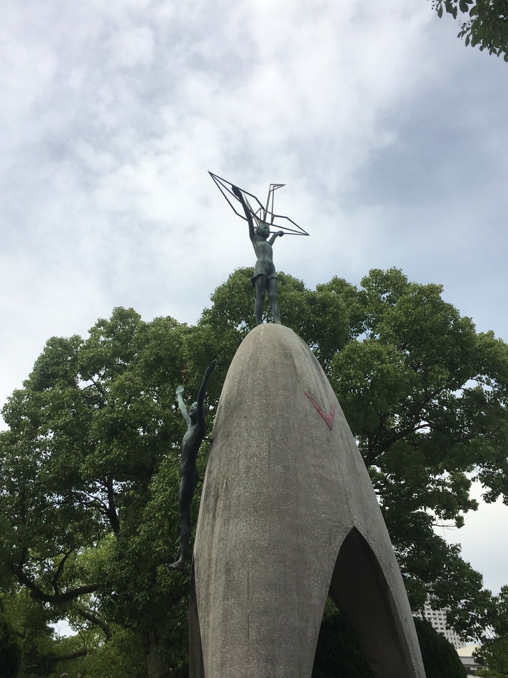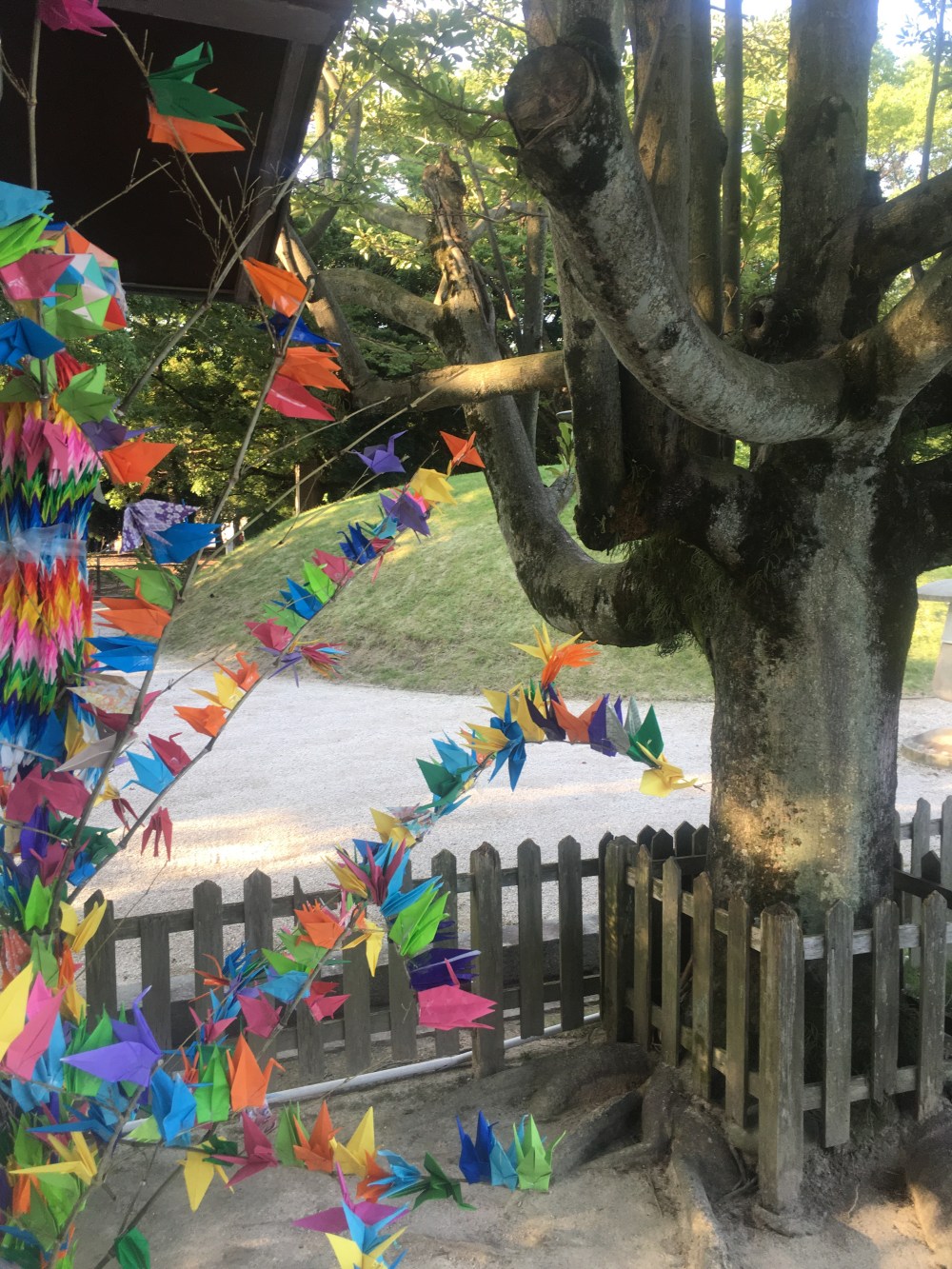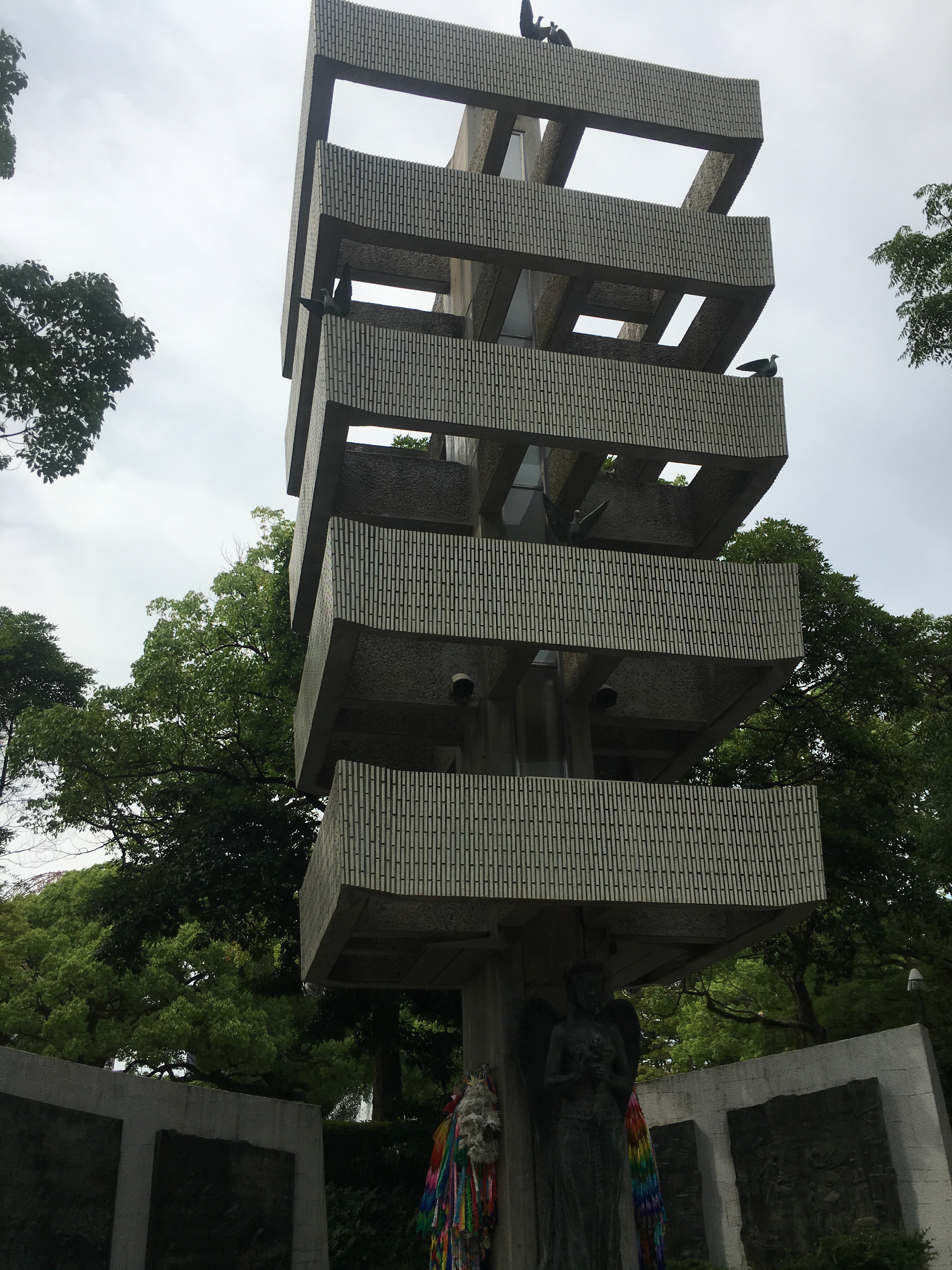 For all the children forced to fightThis bridge was the official target of the bomb yet survived, convulsing severely. Rebuilt in 1983 due to old age.For the more than 10,000 children killedSadako Sasaki’s shoes. She was two when the blast hit near her home. For ten years she was healthy, even competing on her school’s relay team. Then at twelve she was diagnosed with leukemia. She battled fiercely, hoping to survive by making a thousand paper cranes. She eventually succumbed. For the thousands of people buried at this siteFor the 10% or more of victims of Korean descentThis clock chimes every morning at 8:15.