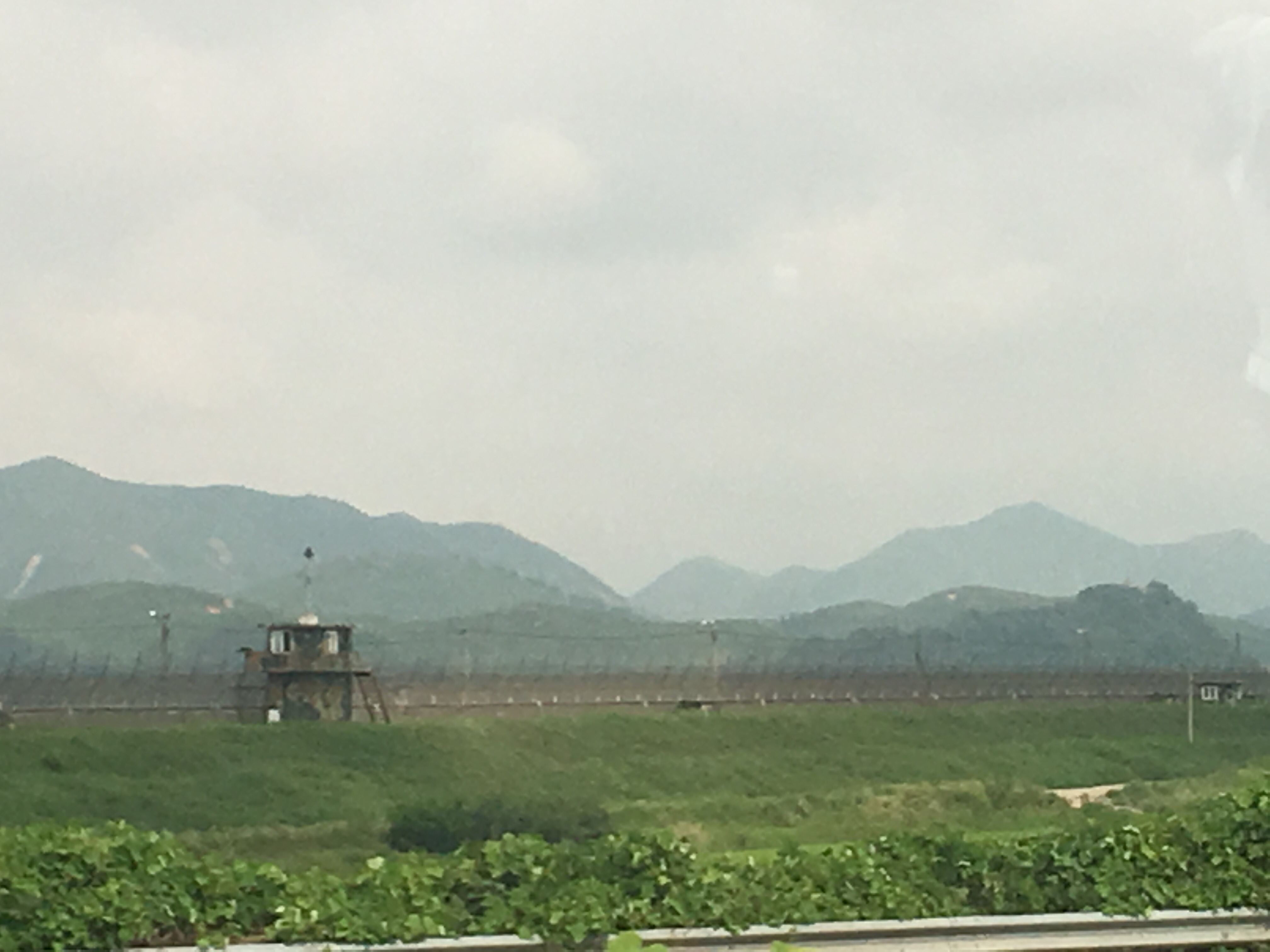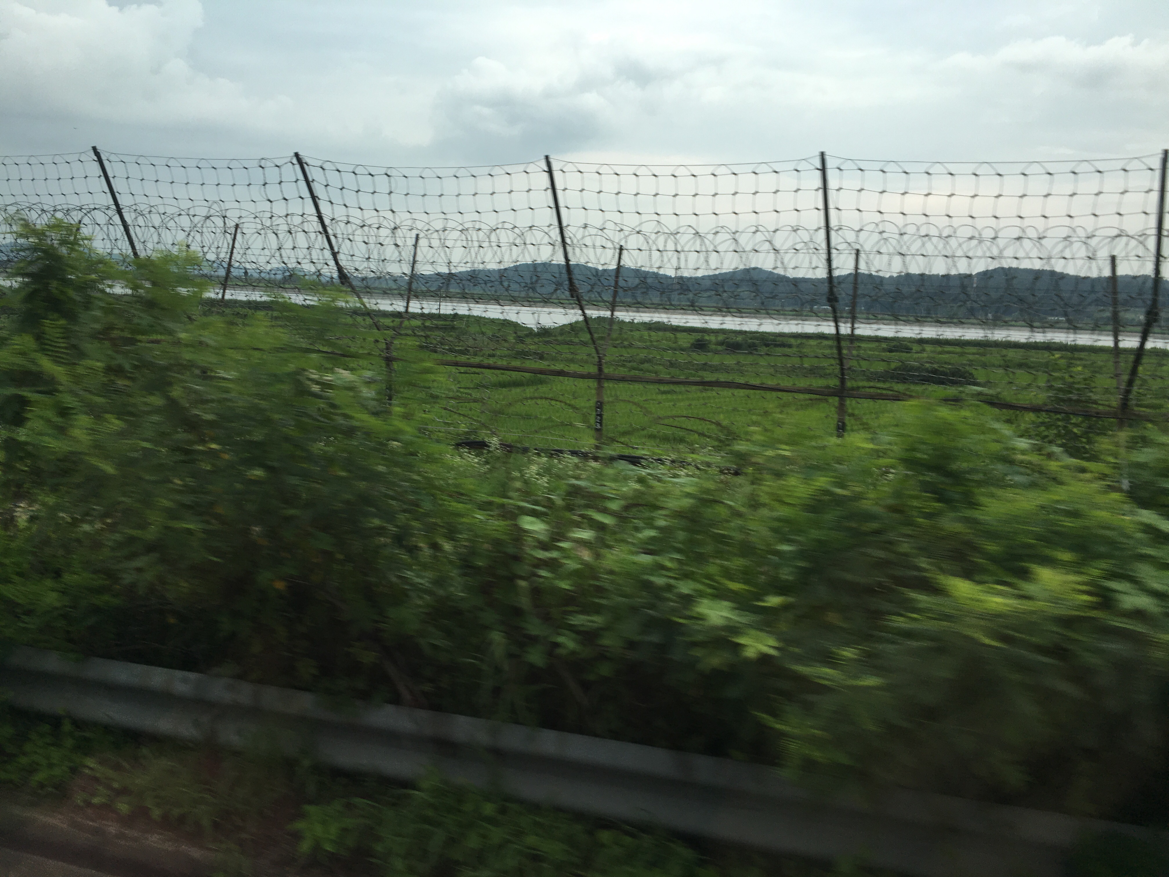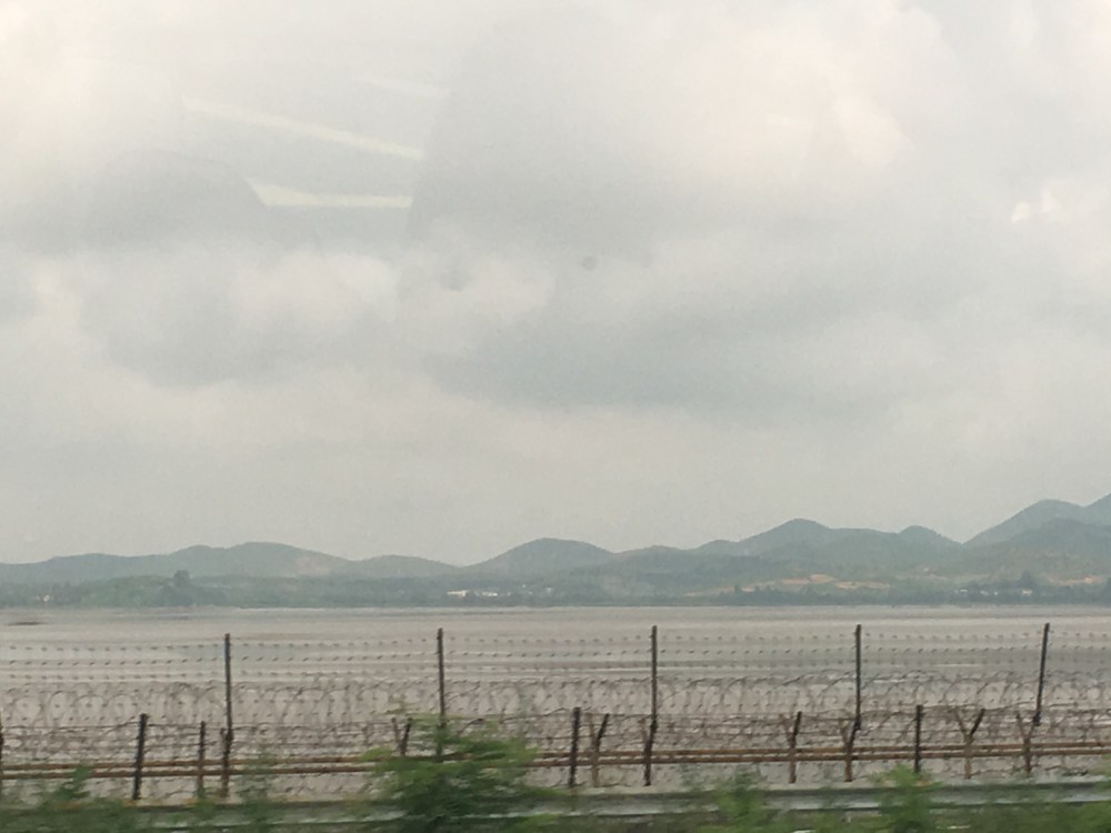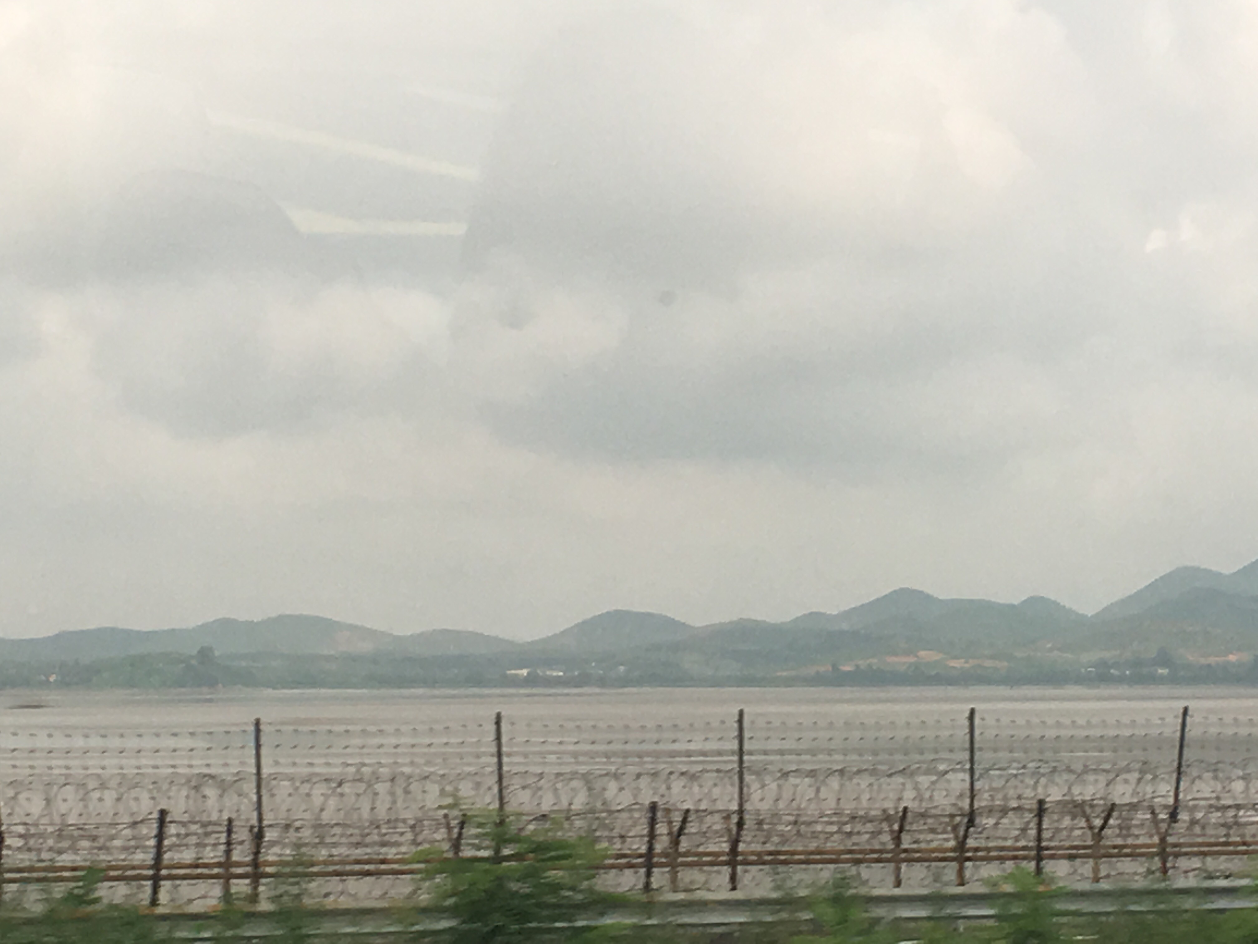 As we drove further north, we caught our first glimpses of North Korean geography. Mountains in background below are in North Korea…