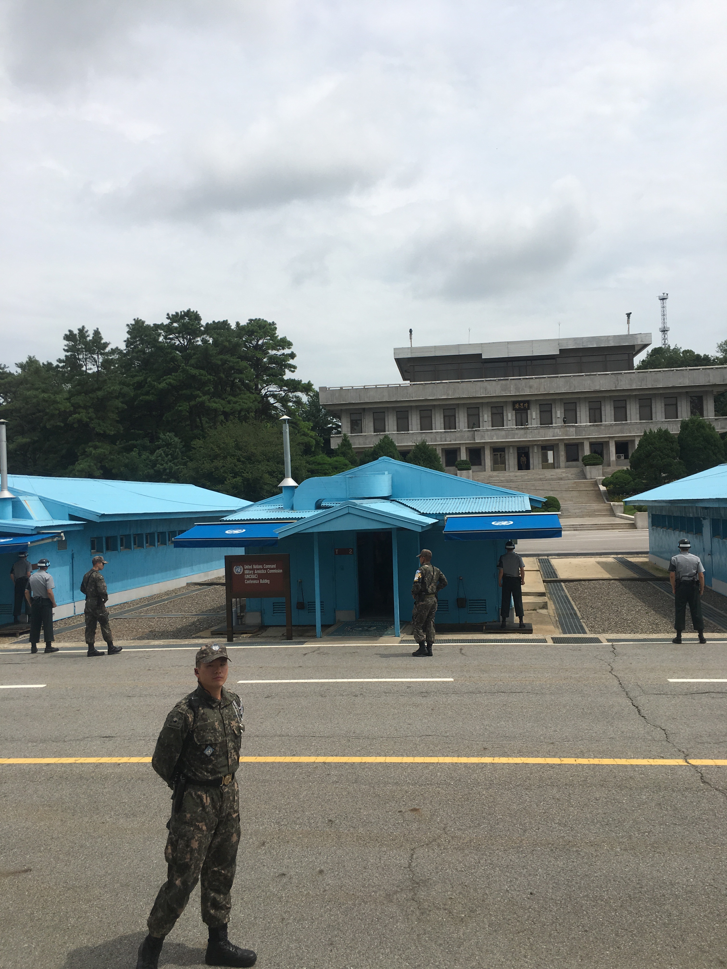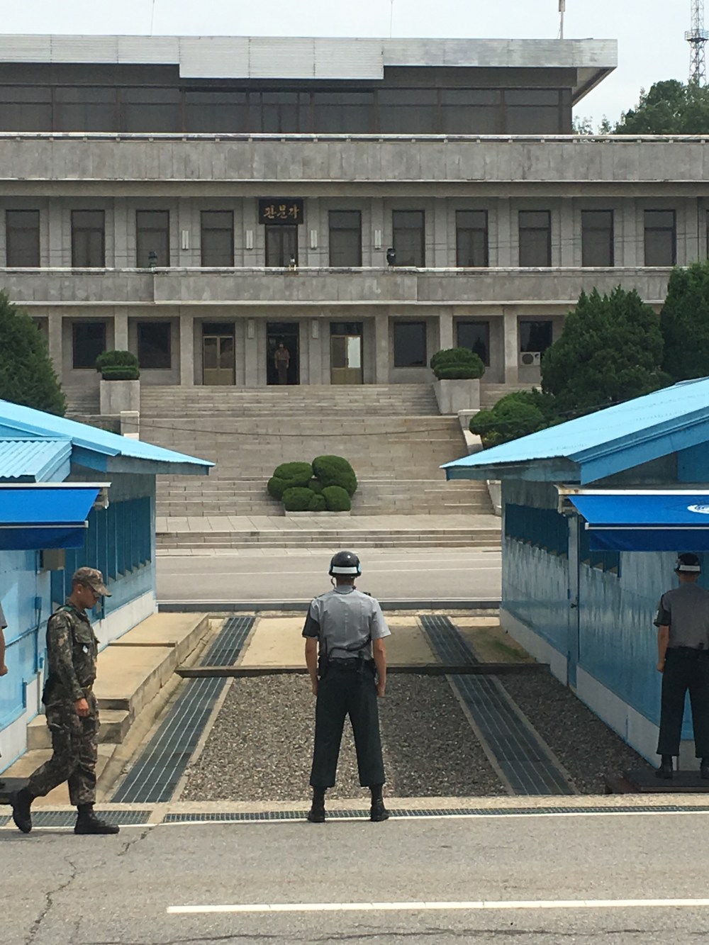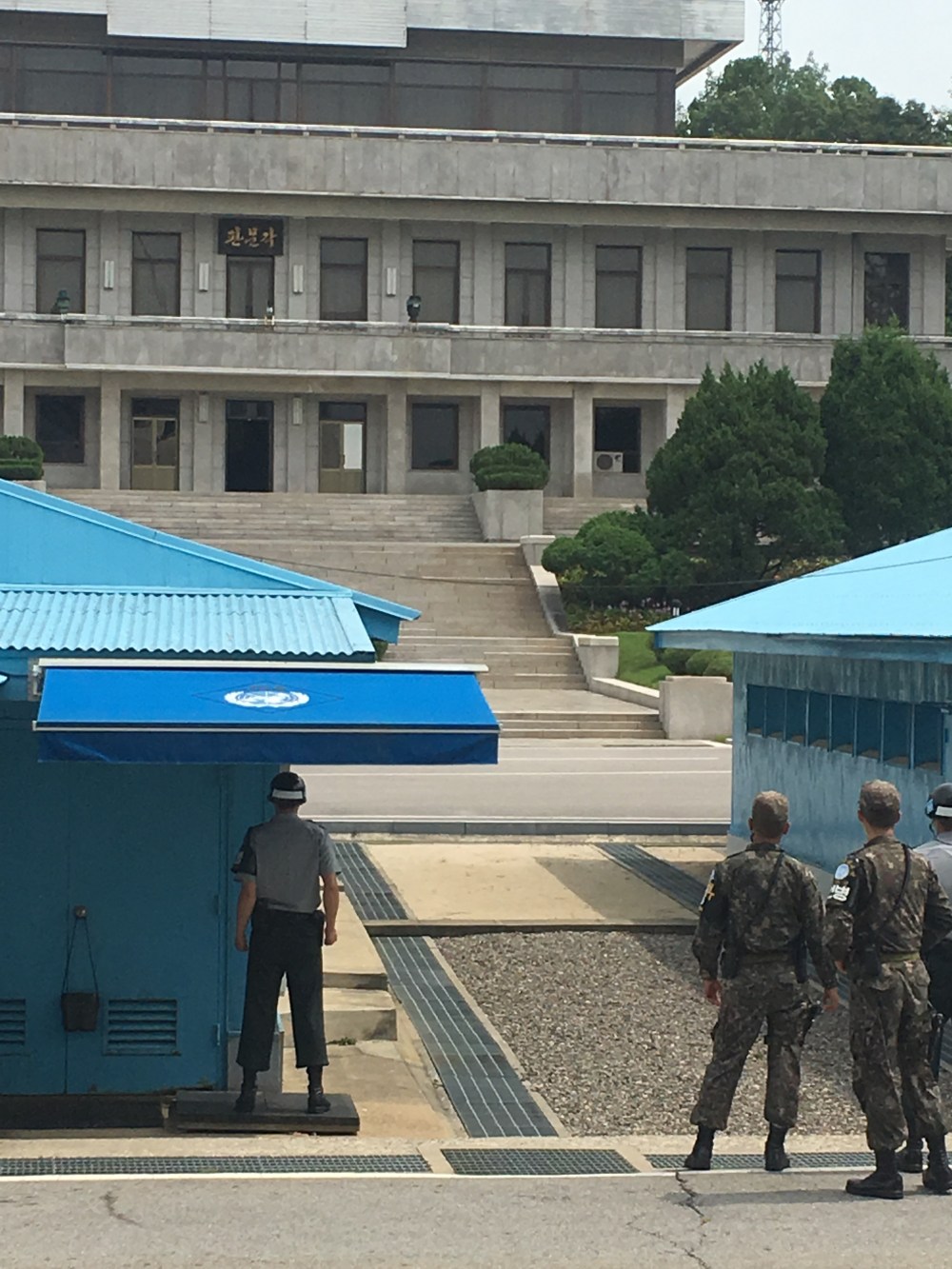 But, actually, this was all too real. What I’d been reading about for so many years I was witnessing up close. South Korean and North Kirean soldiers facing off in the world’s most dangerous intersection.