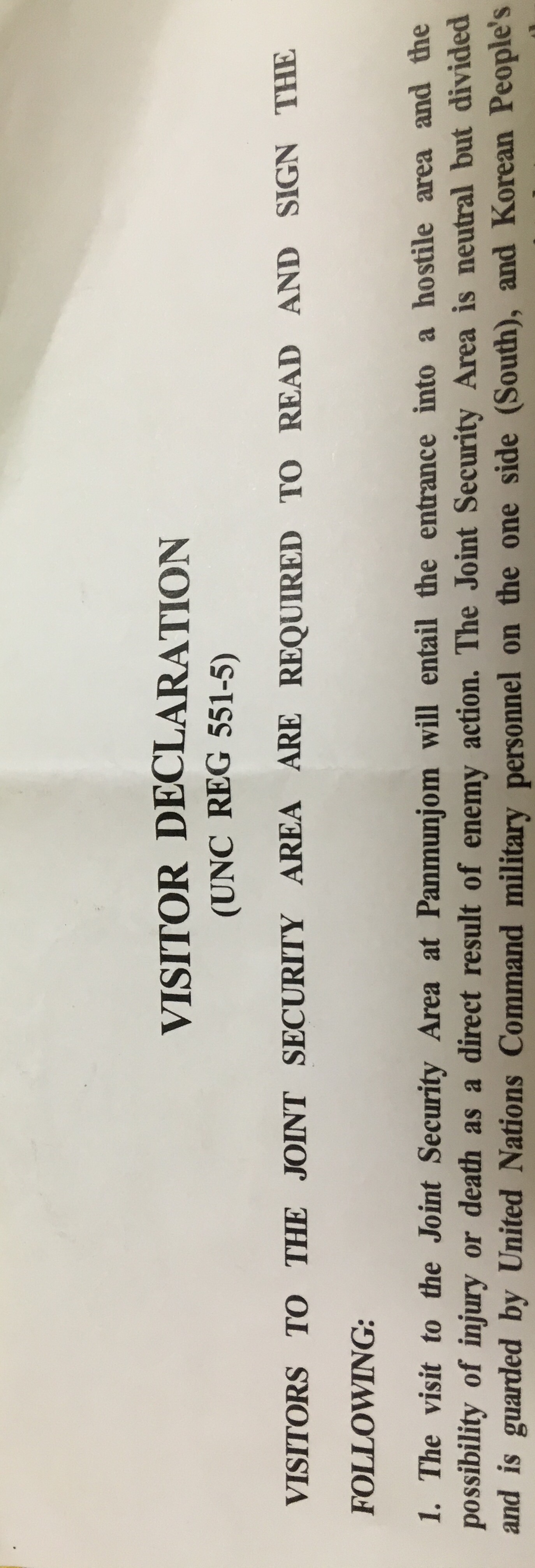 Our ROK military escort exited with us and showed us to the new bus, kept only on these grounds. We had to leave everything behind on the original bus besides our cameras/phones. By this point we had also received a 15 minute briefing about the history of the JSA and the 21 nations involved via the United Nations in maintaining order and, as much as possible, peace here along the border.