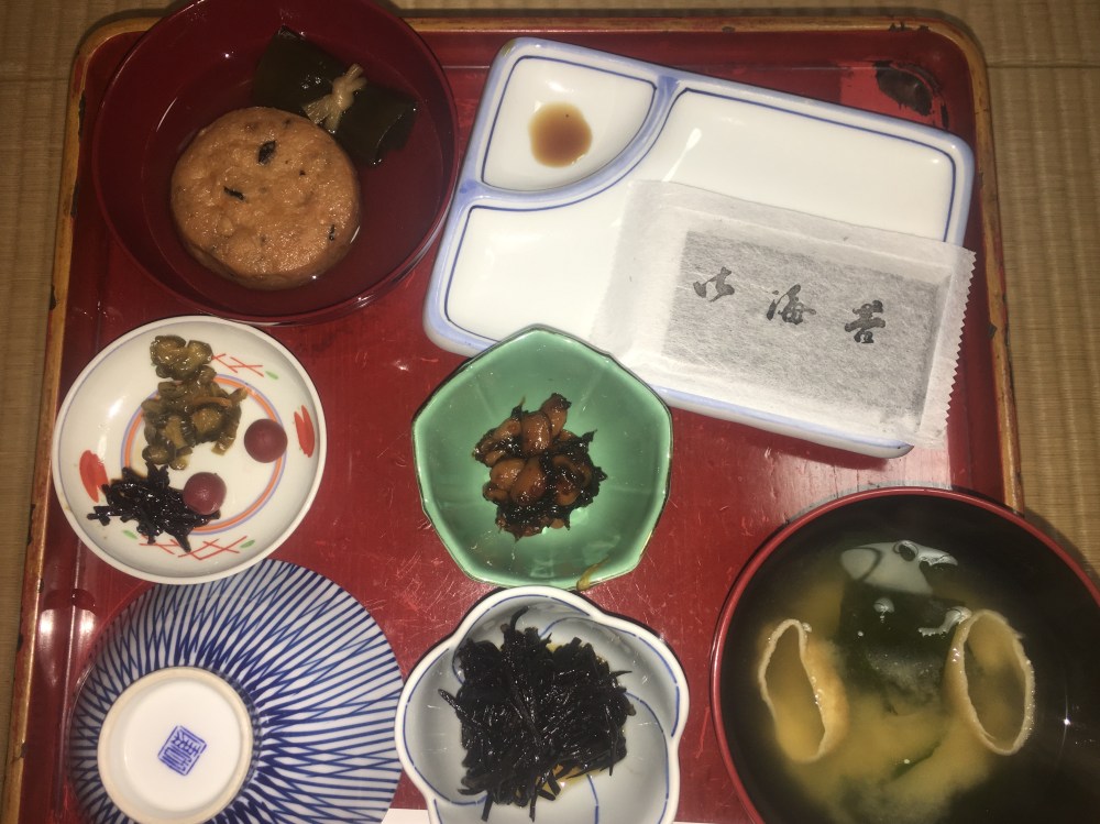 I highly recommend staying at Myuroko-in, a 1,000 year old temple with copious amounts of fascinating foods custom prepared just for you by professionals trained in the ancient art of temple foods.