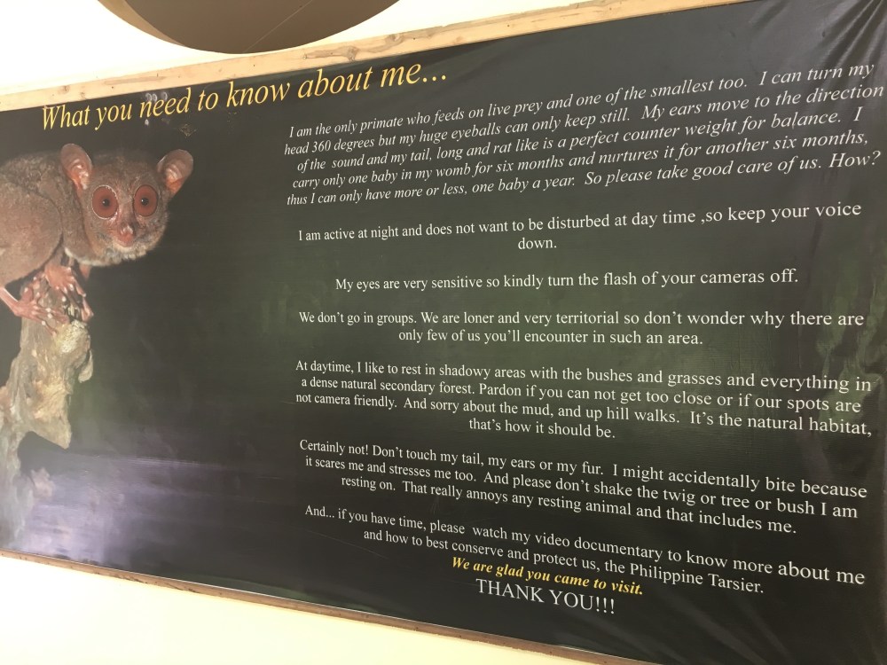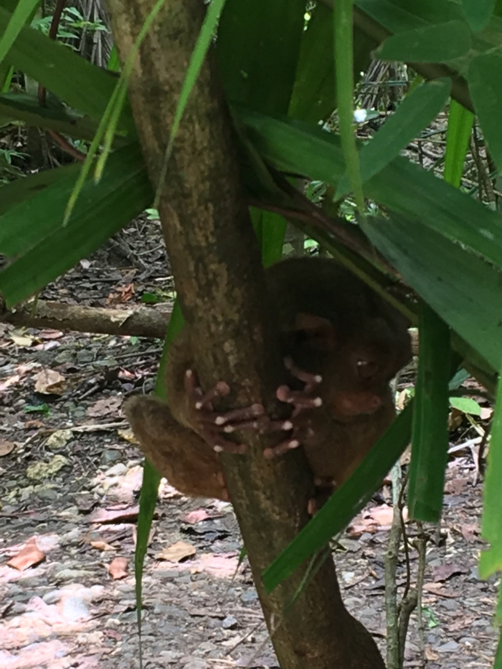 The Tarsier primate (but not a monkey) is only found in two locations on Bohol Island. We went to the sanctuary and saw five Tarsiers. It’s a whirlwind tour through their natural forest habitat. Strict silence must be observed so as not to stress them. If encaged or overly stressed, a Tarsier will commit suicide. Suicidal methods include starving oneself to death or smashing one’s head against a cage.