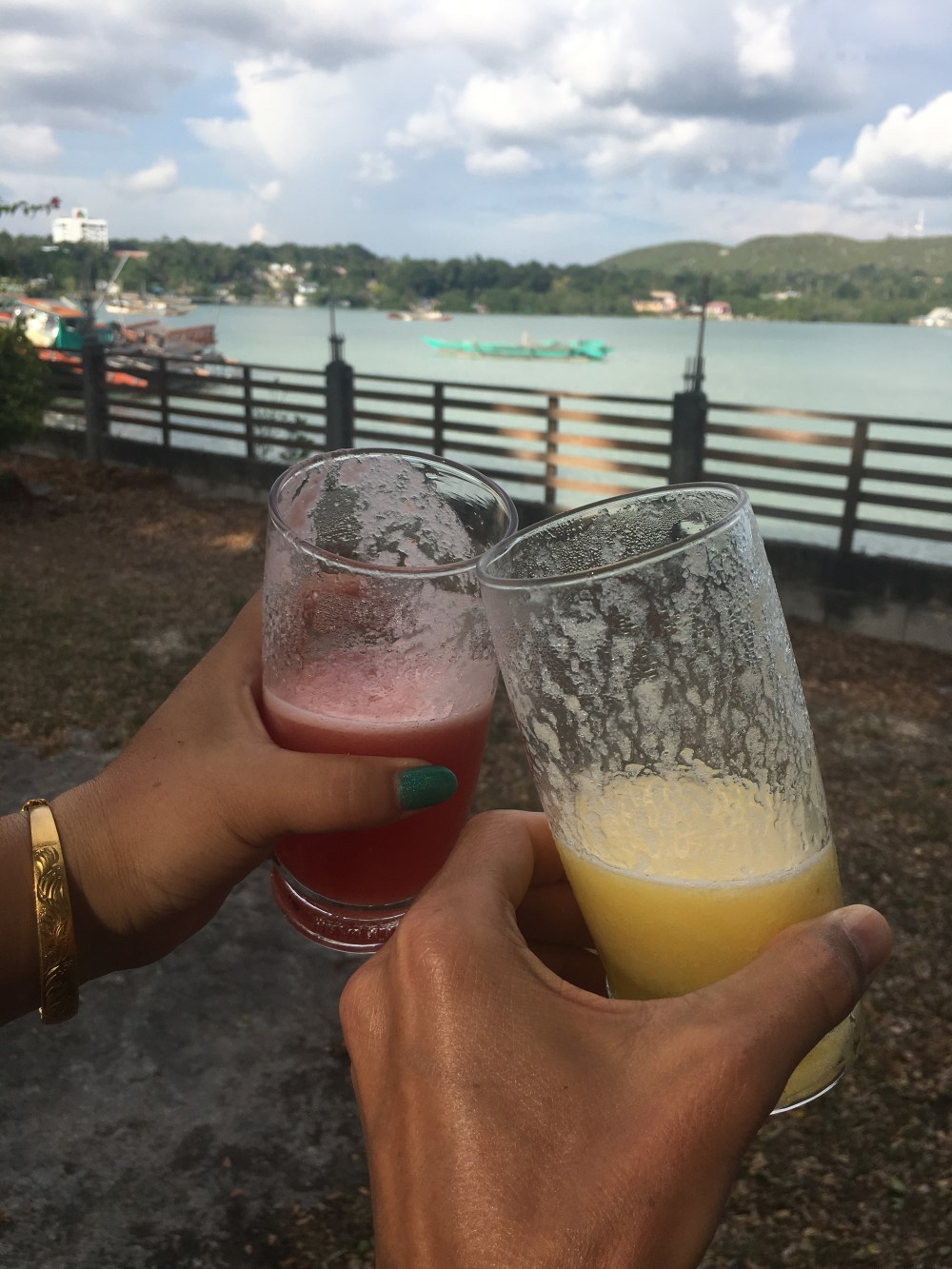 Enjoying fresh juices in a very tranquil spot beside a Catholic Church established in 1697 (Our Lady of the Assumption May be the name).