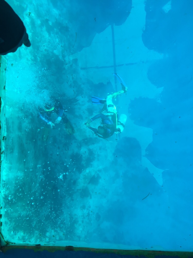 Can’t forget that ladder is behind me, dark open water below. Bamboo scaffolding on each side of this boat, speeding out to Osbol. We’re searching for dolphins, will later swim with sea turtles…and, before that, the almighty whale shark.