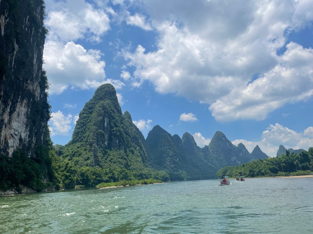 In this surreal landscape, how could I not go run after our boat ride down the Li River? Even if the heat index is 110F. There was no option after I saw a few folks wandering about on a pathway alongside this stunning river valley between legions of uniquely pointed karst peaks glazed with vegetation and small trees growing improbably from the stone, 500 million years in the making.