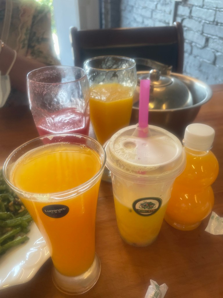 I stood in front of the AC unit, turned on a fan. It was wonderful. But that ain’t nothing like the juices. Soon, Serena arrived. Just behind was a waitress ferrying the following: cold glasses of freshly squeezed watermelon juice, mango juice, clementine-like juice. Also a cup of cold passion fruit juice from another place.